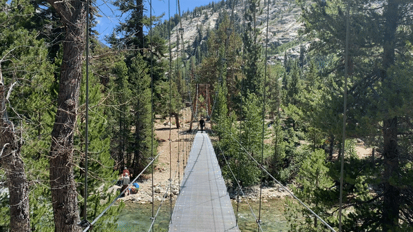 By midday, we had reached the suspension bridge—sometimes called the “Golden Gate of the Sierra,” and a common photo I had seen online in the year of my planning. We filled out water in the river and continued on through manzanita and Jeffrey pine, whitebark and lodgepole until we reached our destination for the night, Twin Lakes.