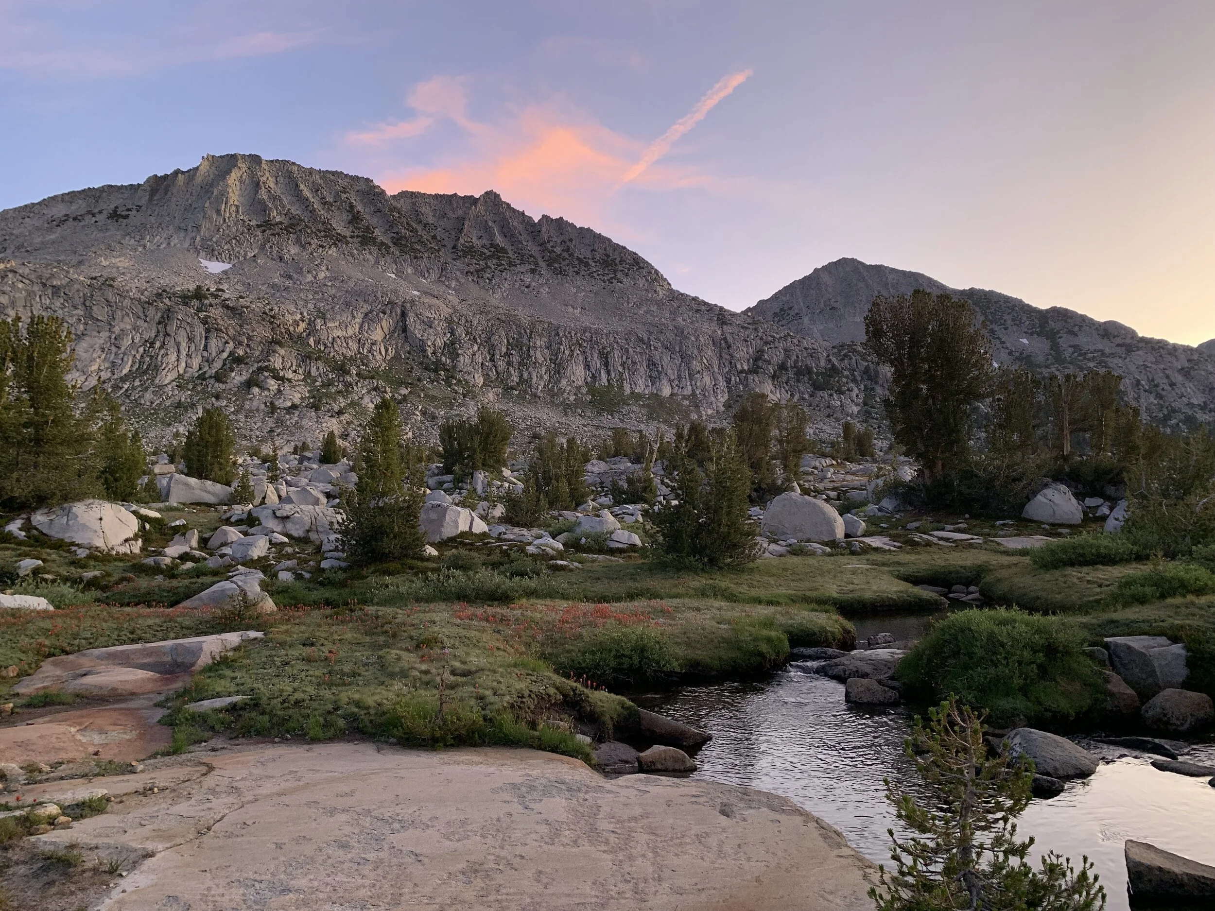 Andrew: This is our 21st day of hiking. And we are at the, uh, Rush Creek Drainage area just below Donahue Pass, which we'll do tomorrow morning. That's our final pass of the trail. And we just have three days left on this hike. It's uh-- This tent has definitely become a new home and it-- it's a symbol of comfort. And at the end of the day, like it's almost-- we just resupplied in Red's Meadow and had a room there. And it was very nice to have, like, a real bed and everything, but it almost feels more comfortable in this small little tent. Just cause I think it's what we're-- what we've been used to for the past 21 days. So yeah, as we get closer to the finish line, it's um, it's strange. It's a, you know-- This isn't just like a week long trip or even a weekend trip. And uh, it's going to be weird waking up and not having to do 10 to 15 miles.